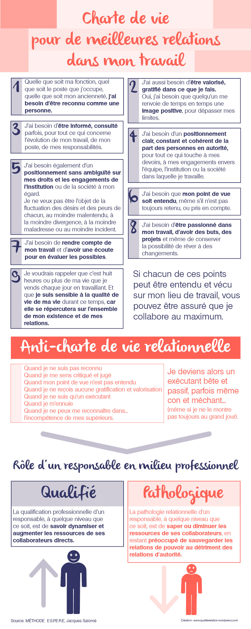 Voir l'image agrandie Charte de vie …. au travail Source : Jacques Salomé, Manuel de survie dans le monde du travail Par Gaelle|2015-09-02T11:53:41+02:00septembre 2nd, 2015|A lire, voir, écouter, Blog, Boîte à outils, Relation professionnelle| Partagez cet article ! FacebookLinkedInPinterestEmailWhatsAppTelegramCopy Link Articles similaires On a tous une place… oui mais laquelle ? Galerie On a tous une place… oui mais laquelle ? 2017, être qui vous voulez être… Galerie 2017, être qui vous voulez être… Supplique d’un enfant à ses enseignants Galerie Supplique d’un enfant à ses enseignants A la découverte de la Méthode ESPERE® Galerie A la découverte de la Méthode ESPERE® Réaliser un projet qui vous tient à cœur Galerie Réaliser un projet qui vous tient à cœur