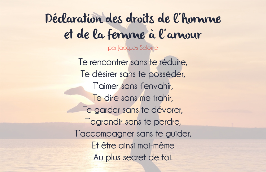 Déclaration des droits de l’homme et de la femme à l’amour Par Gaelle|2014-05-05T12:19:30+02:00mai 5th, 2014|Relation de couple| Partagez cet article ! FacebookLinkedInPinterestEmailWhatsAppTelegramCopy Link Articles similaires 5 (bonnes) raisons de se disputer Galerie 5 (bonnes) raisons de se disputer Changer oui, mais… Galerie Changer oui, mais… Tout partager ou jardiner son intimité ? Galerie Tout partager ou jardiner son intimité ? Seul en couple Seul en couple